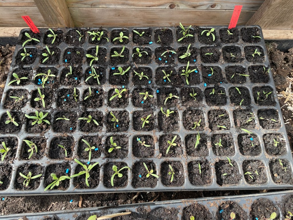 Dës Woch hunnnech mat e bëssen Ënnerstëtzung déi éischt Keimlingen pikéiert. Trotz Schnéi a kaalen Temperaturen hunn se dës Aktioun gutt iwwerstanen a wuessen elo hoffentlech zügeg fir an e puer Wochen eraus geplanzt ze ginn.